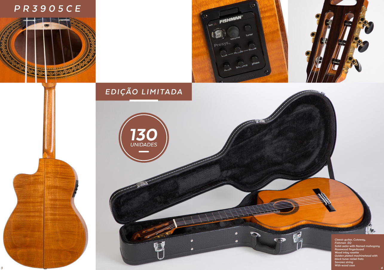 Com topo em cedro sólido, e costas, ilhargas e braço em mogno com tratamento flamed, à PR3905CE junta-se fingerboard e ponte em blackwood, o que resulta numa superfície suave e agradável ao toque.